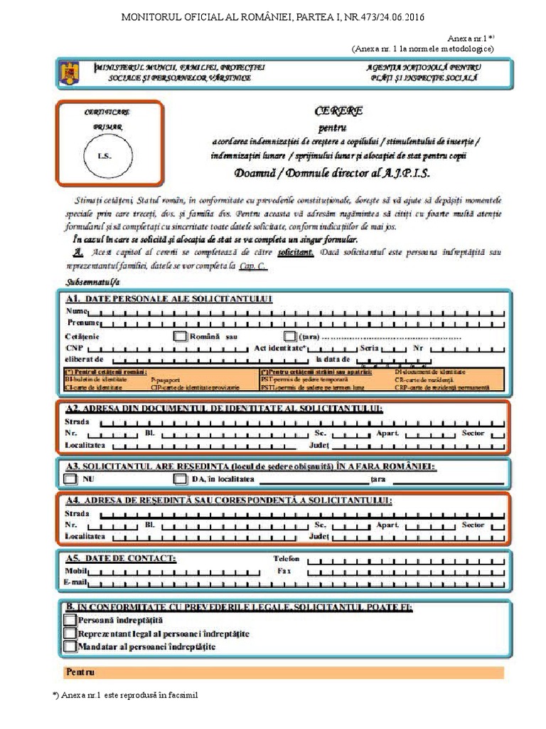 În monitorul oficial de luni a fost publicată ordonanţa de urgenţă care corectează această scăpare a guvernului, după modificarea codului fiscal, la începutul acestui an. Savesave cerere indemnizatie crestere copil si anexa 2.do. Indemnizația de creștere a copilului.